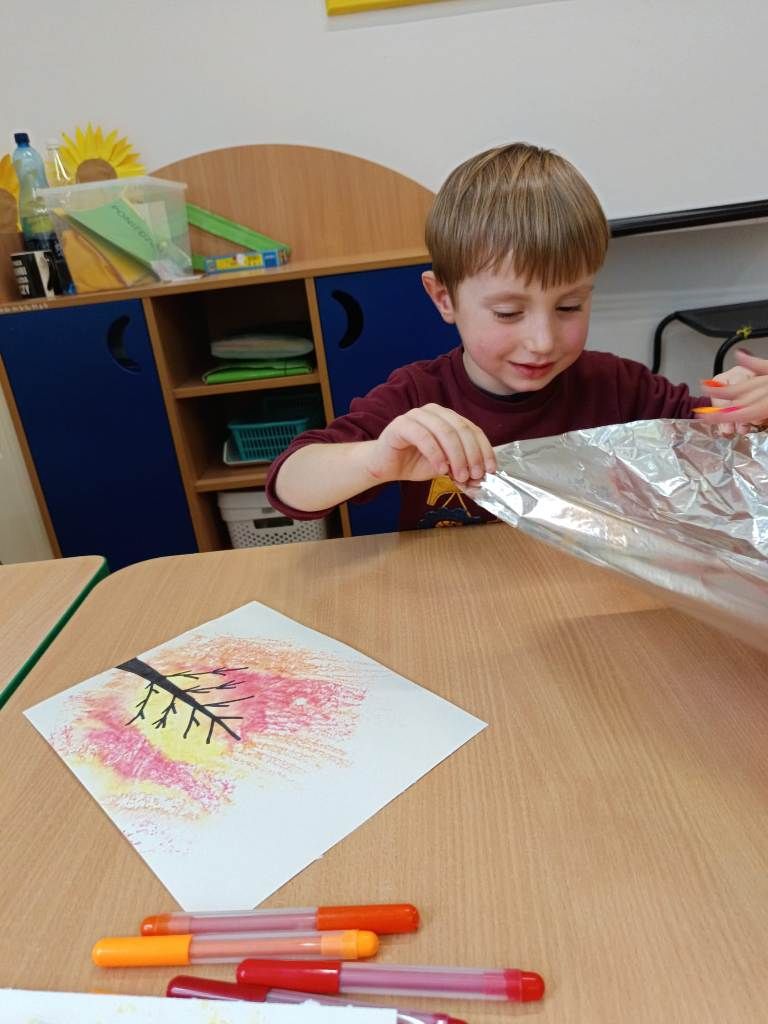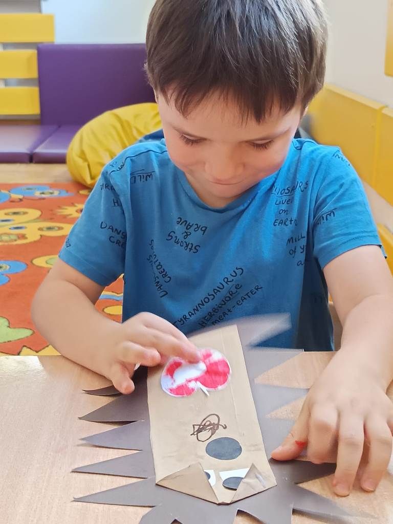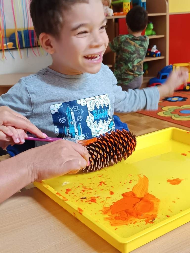 Październik był w naszej grupie pełen wrażeń. Chłopcy chętnie brali udział w zajęciach edukacyjnych. Poznawali nowe zabawy. W październiku rozmawialiśmy o dobrych relacjach, o trzech magicznych słowach, które pomagają nam w kontaktach z innymi (proszę, dziękuję, przepraszam).Chłopcy w ramach innowacji wykonywali prace związane z jesienią, przy pięknej muzyce klasycznej.