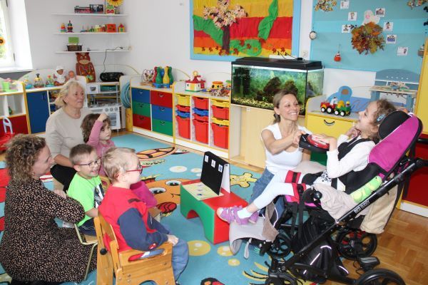 Potrzeba komunikacji to jedna z podstawowych potrzeb człowieka. Brak możliwości jej zaspokojenia blokuje w sposób zdecydowany wszystkie inne sfery rozwoju dziecka: sferę intelektualną (mowa jest narzędziem myślenia i działania), sferę emocjonalną (mowa jest nośnikiem przekaźnikiem emocji) oraz sferę społeczną (poprzez mowę nawiązujemy kontakty międzyludzkie, funkcjonujemy w grupie). Dlatego też, jednym z głównych celów terapii w naszym przedszkolu stało się poszukiwanie sposobów, które pozwolą naszym dzieciom zaspokoić potrzebę komunikowania się.
