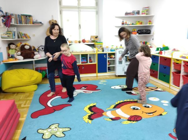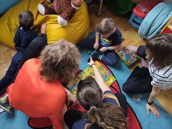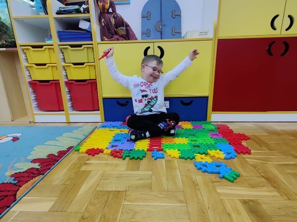 Dużo radości przyniosło również spotkanie ze studentami AWF, podczas którego dzieci bawiły się przy użyciu ciekawych układanek edukacyjnych. Była to doskonała okazja do integracji, ruchu i rozwijania nowych umiejętności.