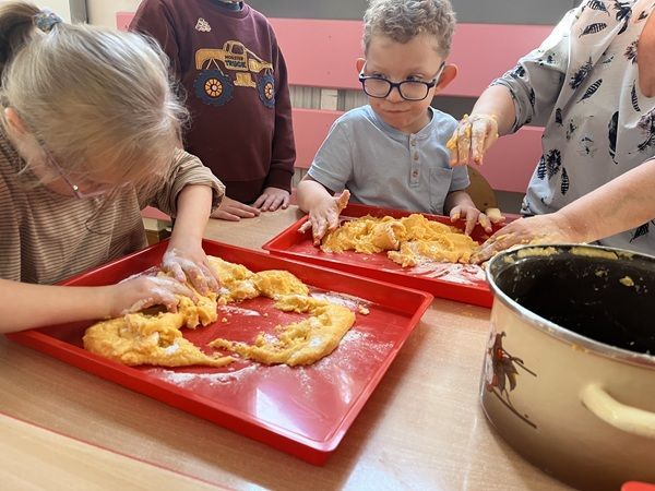 Masy plastyczne- nauka ugniatania, krojenia, wałkowania poprzez zabawę (nabywanie podstawowych umiejętności do zajęć kulinarnych) |