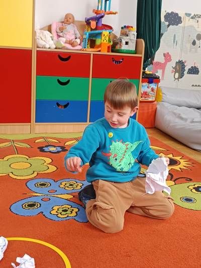 Styczeń minął nam na zabawie połączonej z nauką, podczas ktorej dzieci doświadczały i zdobywały nowe umiejętności. Dużo radości i wyciszenia przyniosła tuba sensoryczna z wodą, bąbelkami i zmieniającymi się kolorami.