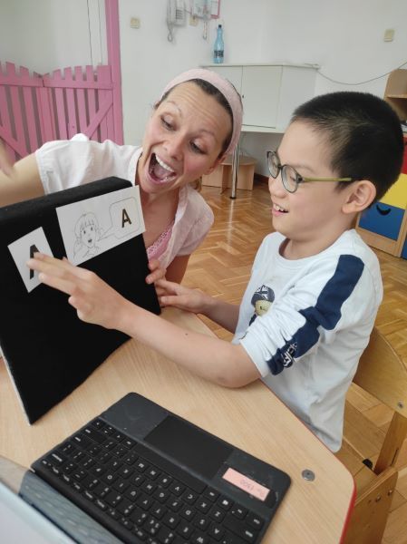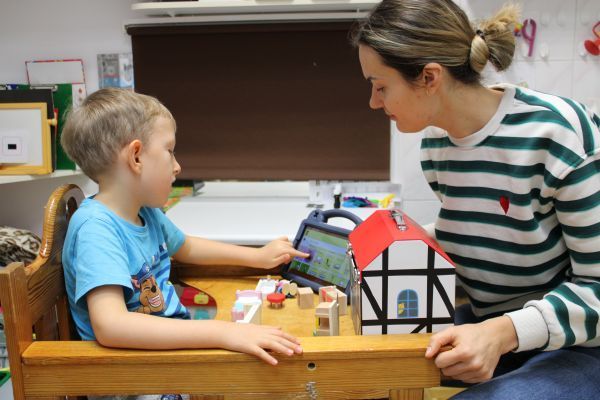 - trening języka i komunikacji AAC: PECS, PCS, gesty Makaton, Mówik z oprogramowaniem na tablet.