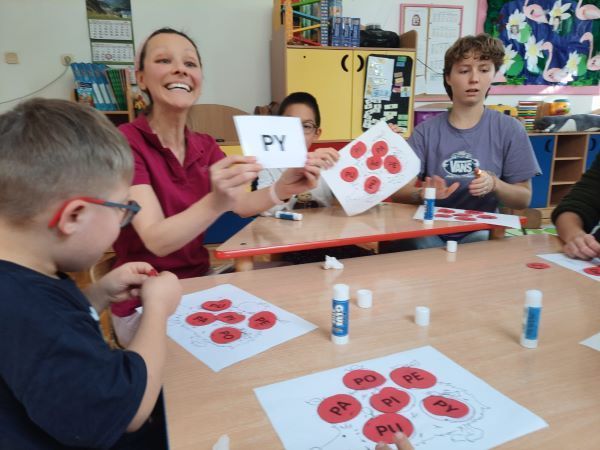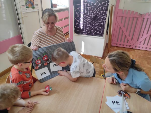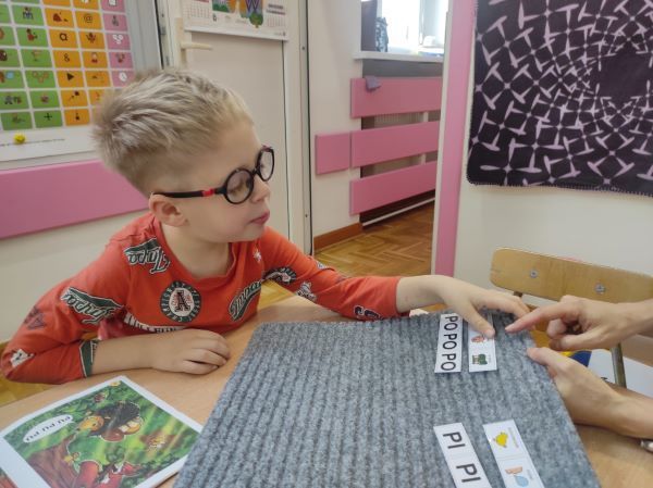 - Wprowadzenie treningu fonologicznego- wyklaskiwanie, liczba sylab w wyrazach, słuchowa synteza i analiza sylabowa,