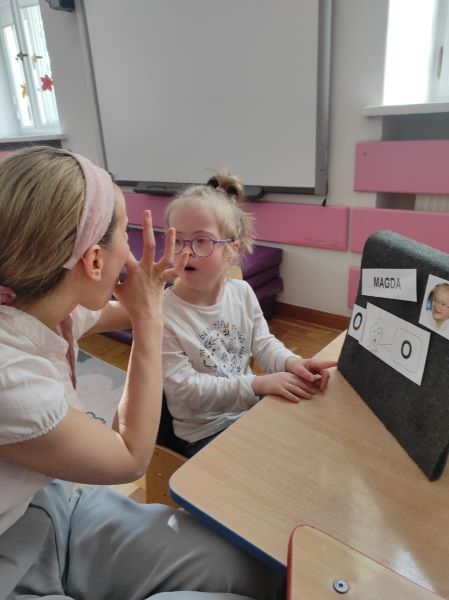 - Wprowadzenie daktylografii, jako wspomagającej metody wizualizacji artykulacji poszczególnych sylab,