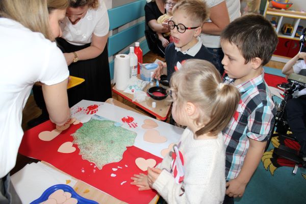 W naszym przedszkolu uroczyście obchodziliśmy Narodowe Święto Niepodległości. Tego dnia dzieci przyszły ubrane odświętnie , a w salach pojawiły się narodowe dekoracje - flagi, kotyliony i godło Polski. Z okazji Narodowego Święta Niepodległości odbyły się wyjątkowe warsztaty plastyczne, podczas których przedszkolaki wykonywały kotyliony w barwach biało-czerwonych i przyklejały serduszka dla Polski. O godzinie 11:11 dzieci z wielkim zaangażowaniem zaśpiewały Hymn Narodowy - "Mazurek Dąbrowskiego" - włączając się w akcję " Szkoła do Hymnu". W sali panowała radosna i patriotyczna atmosfera.