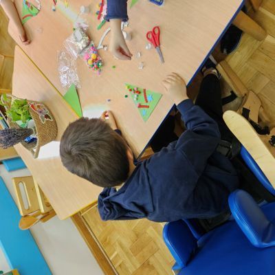 Przygotowania do Świąt: dekorowaliśmy salę, ubieraliśmy choinkę, tworzyliśmy własnoręczne ozdoby i kartki świąteczne.