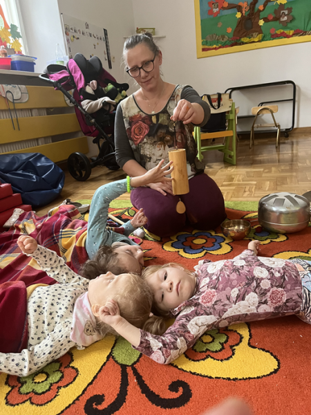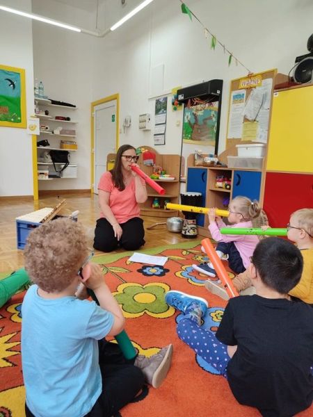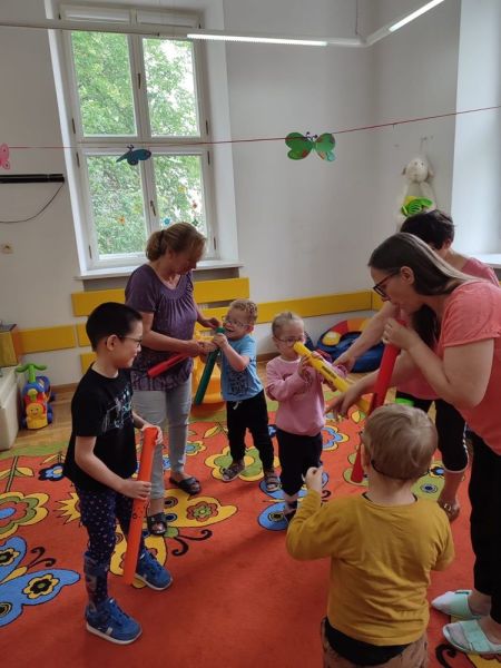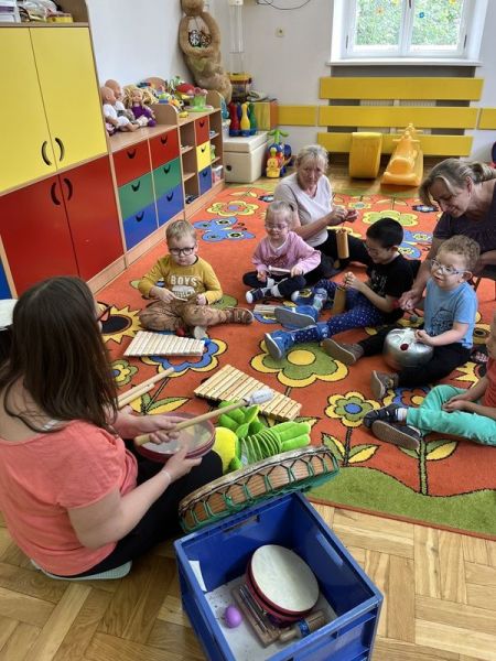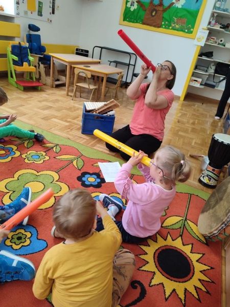Zapraszamy na fotorelację z zajęć muzykoterapeutycznych realizowanych w grupie Żółtej w ramach innowacji pedagogicznej CZTERY PORY ROKU W ŚWIECIE MUZYKI. W tym roku szkolnym dzieci mogły brać udział w koncertach relaksacyjnych, tworzyliśmy wspólnie bajki muzyczne. Doświadczyliśmy, że wspólne muzykowanie daje wiele przyjemności. Każdy czuł się na zajęciach swobodnie i mógł wyrazić się poprzez muzykę.
