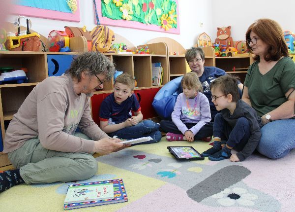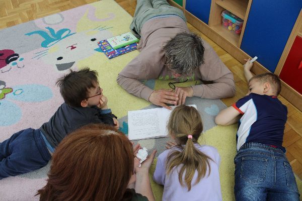 W kwietniu w ramach naszej przedszkolej akcji "Czytanie na dywanie" odwiedzili nas rodzice: grupę różową Tata Franka, a grupę niebieską Mama Natana.
