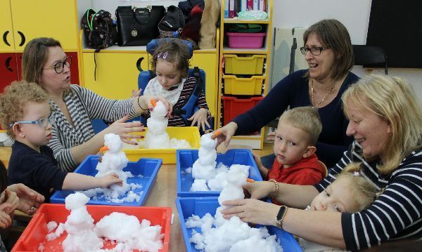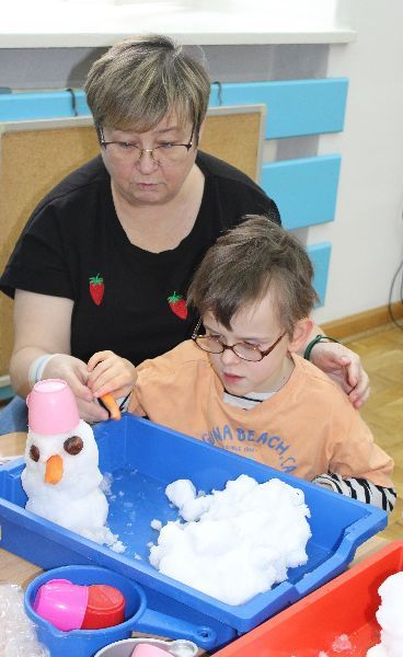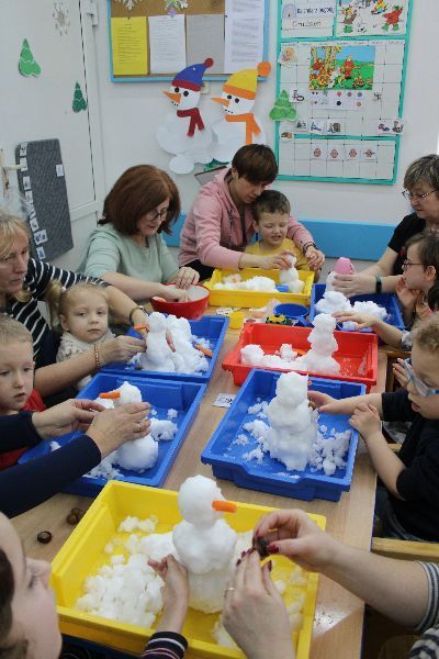 18.01.2024r. obchodziliśmy w przedszkolu "Dzień Bałwana". Wszyscy wesoło bawili się śniegiem.