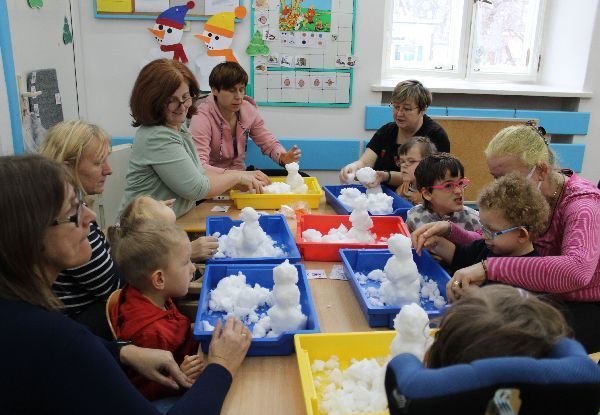 Każde dziecko ulepiło swojego śnieżnego przyjaciela.