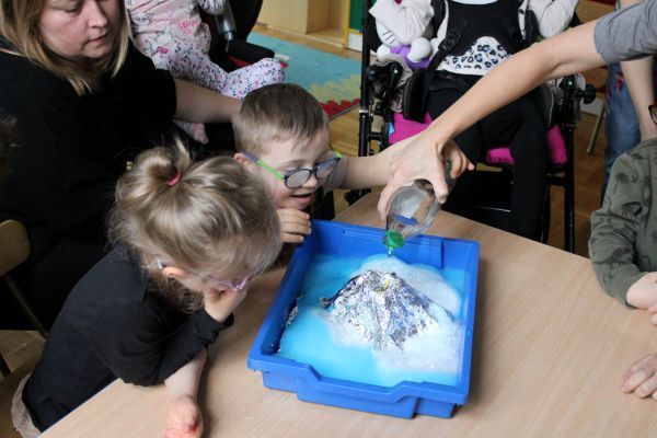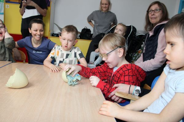 Dzieci mogły przyjrzeć się jak wyglądały, uczestniczyć w eksperymentach - wybuch wulkanu, poszukiwać szkieletów dinozaurów