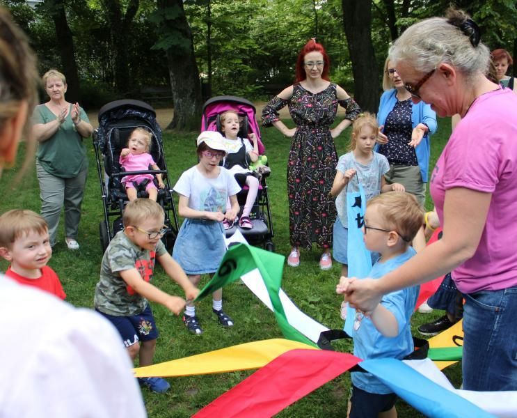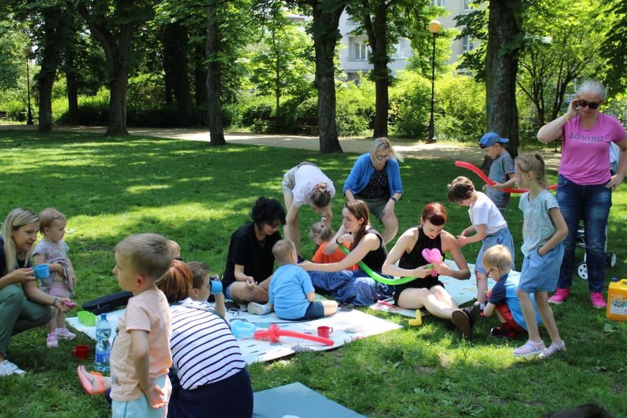 Kochani Rodzice/Opiekunowie, Dzień Dziecka już za nami, tym razem wybraliśmy się wspólnie do Parku Dreszera na szalony piknik. Rozpoczęliśmy zabawami ruchowymi z chustą Klanza do piosenek „Jaki tu spokój, lal la la, nic się nie dzieje la la la la” oraz „Karuzela”, które wciągnęły nas w wir tańca. Potem nasze kochane wolontariuszki przygotowały dla dzieciaków liczne atrakcje – kolorowe figurki z baloników, rysowanie i malowanie w plenerze oraz malowanie buziek. Na koniec imprezę uświetnił pokaz puszczania giga-baniek pani Asi. Humory dopisywały, zwłaszcza, że pojawił się drobny poczęstunek.