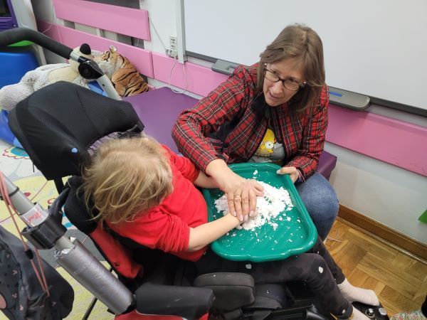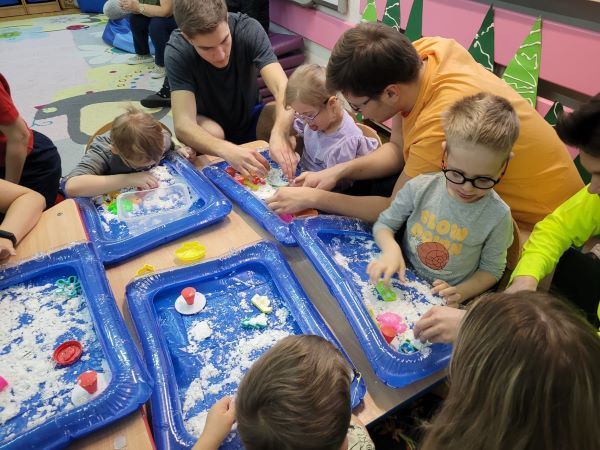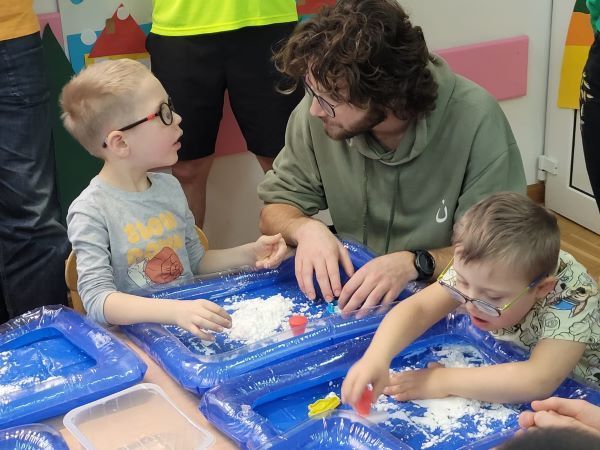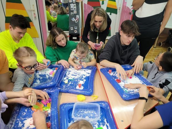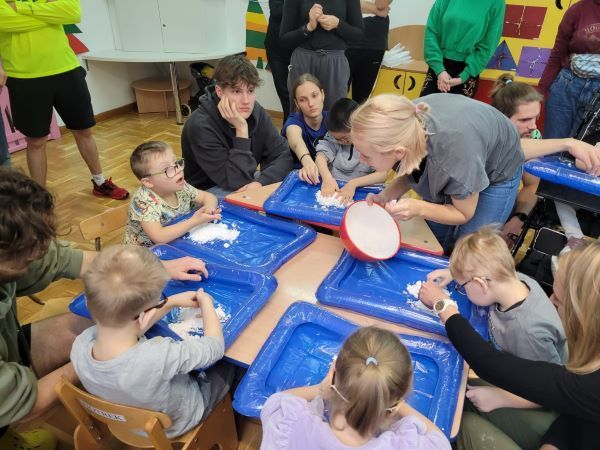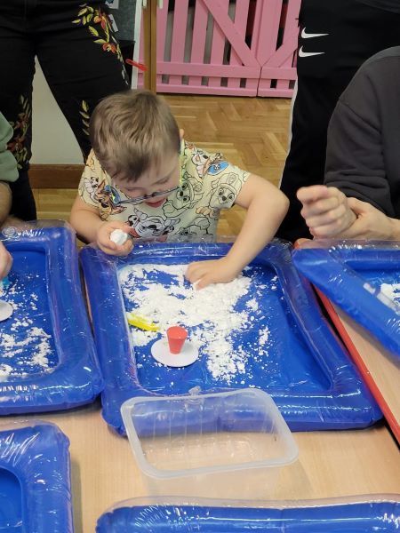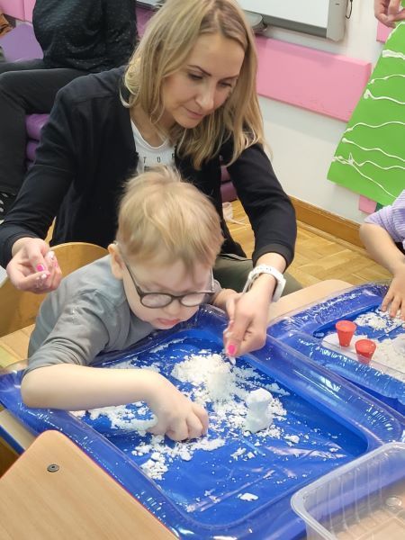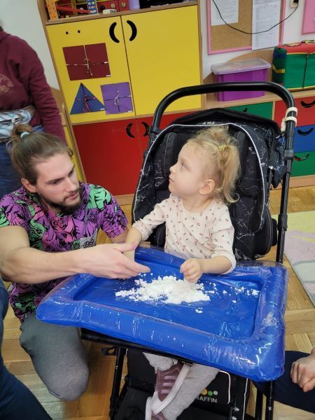 W tym miesiącu była to zabawa masą plastyczną własnoręcznie wykonaną.