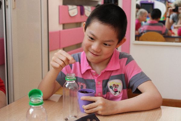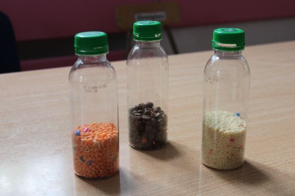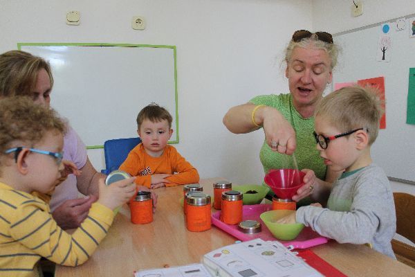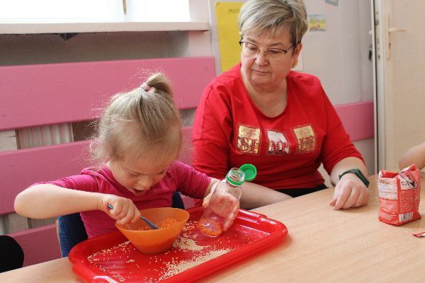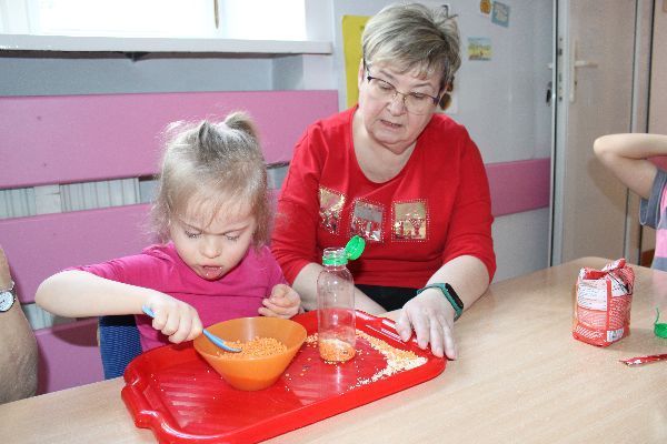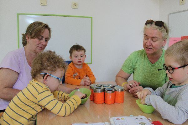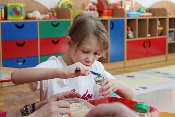 Z wielką uwagą i koncentracją trzeba było poprzesypywać materiał sypki. Można było podotykać, powąchać a potem posłuchać jak gra własnoręcznie zrobiony instrument.