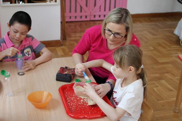 W tym miesiącu dzieci miały za zadanie przygotować sensoryczne grzechotki.