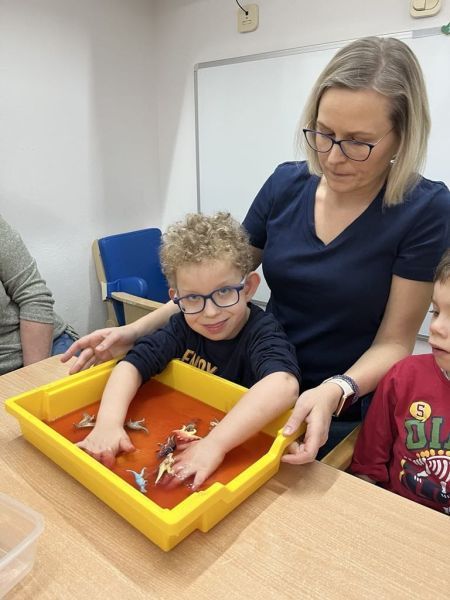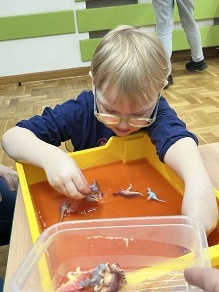 Zajęcia dodatkowe dostosowujemy do podstawy programowej dlatego też towarzyszyły nam przy tym dinozaury.