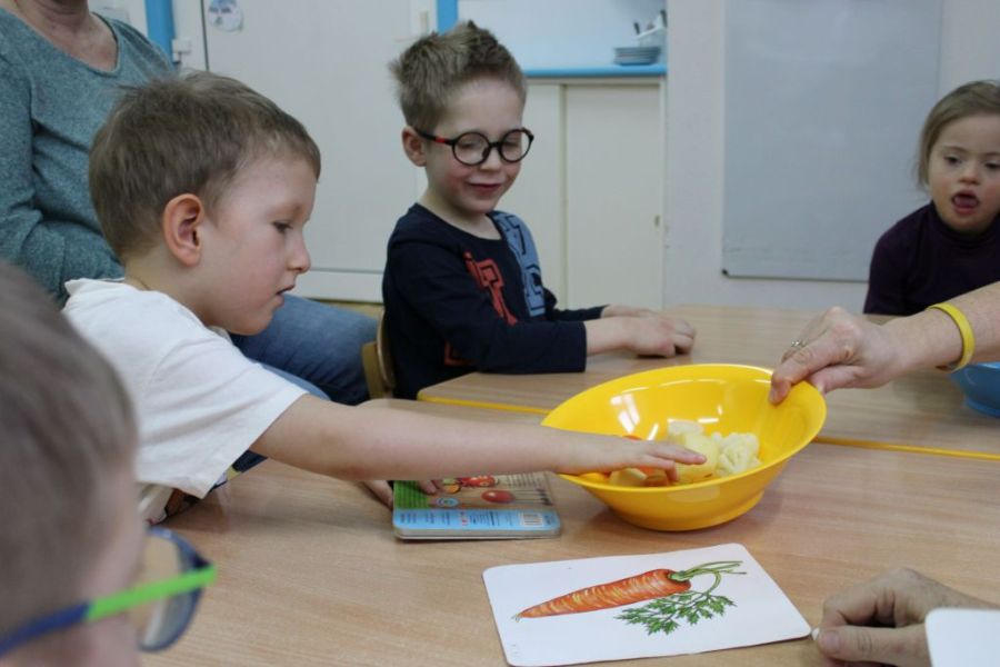Dzieci mogły dotknąć, powąchać i spróbować różnych warzyw gotowanych i surowych.