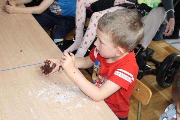 Jednak my byliśmy dzielni, tylko wąchaliśmy i bawiliśmy się nim. Nikt nie podjadał. Zabawa była świetna i ciąąąąąąągnęła się jak slime ;-)