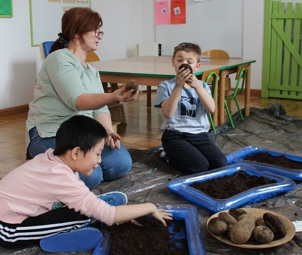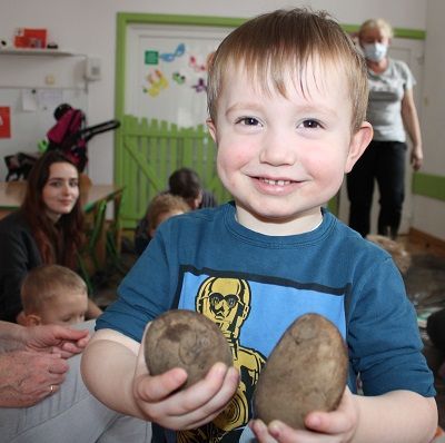 Choć za oknem zima, to u nas nastrój nieco jesienny... W poniedziałek 5.02.2024r. przedszkolna sala zmieniła się w prawdziwe pole. Dzieci zbierając ziemniaki, ćwiczyły przeliczanie i rozwijały swoje zmysły. Dzieci już wiedzą, że ziemniaki nie rosną na sklepowych półkach!