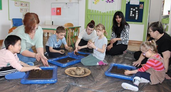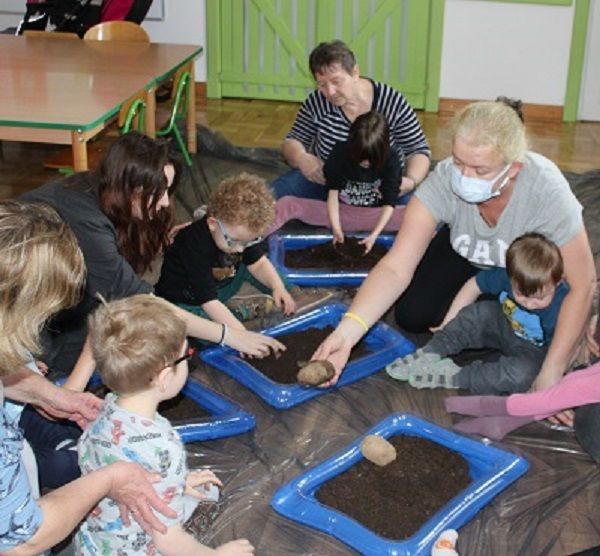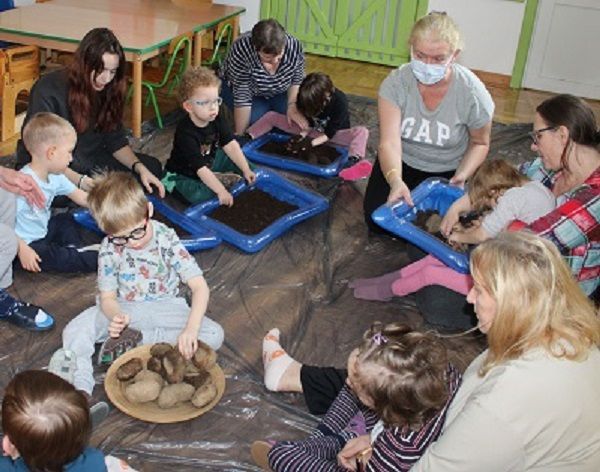 „Wykopki” w przedszkolu - zabawy sensoryczne.