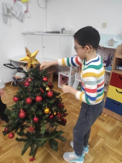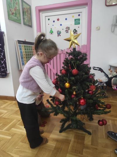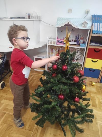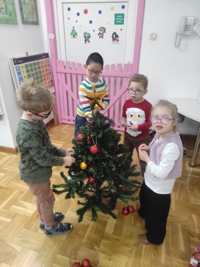 Pod koniec miesiąca realizowany był temat Przygotowania do świąt bożonarodzeniowych. Dzieci uczestniczyły w świątecznych aktywnościach, słuchały kolęd oraz poznawały symbole związane z Bożym Narodzeniem.