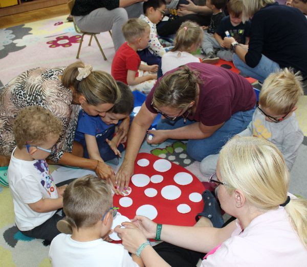 U nas w przedszkolu świętowaliśmy wcześniej - w piątek 13. września. To wyjątkowe święto kreatywności, odwagi i odkrywania własnych talentów. U nas dzień był pełen różnych aktywności. Każde dziecko mogło znaleźć coś odpowiedniego dla siebie albo spróbować wszystkiego po trochu. Z tych wielu kolorowych kropek powstały wyjątkowe prace plastyczne.