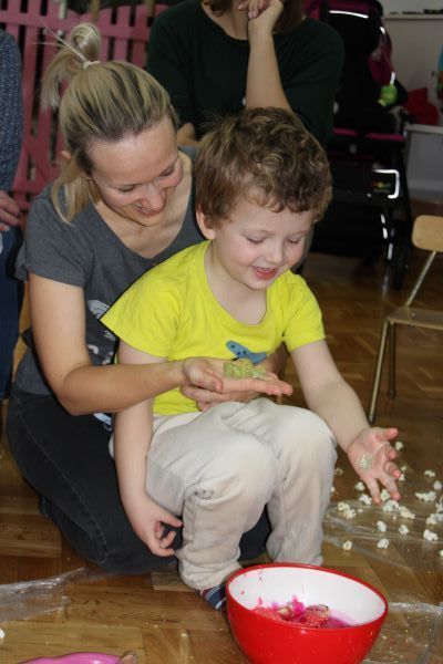 To również czas radości, dlatego uczciliśmy to wspólną zabawą sensomotoryczną - było wesoło, kolorowo i smacznie ;-)