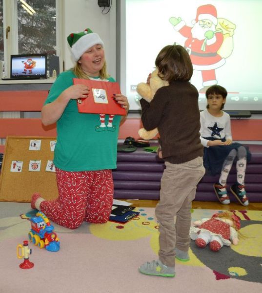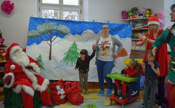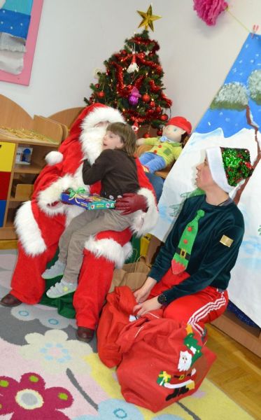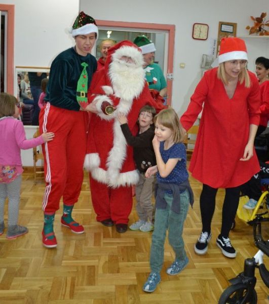 Pod koniec naszej zabawy przybył wyczekiwany gość: Święty Mikołaj! Wszyscy go serdecznie przywitaliśmy i dostaliśmy prezenty. Na koniec naszego spotkania z Mikołajem, zrobiliśmy wspólne, pamiątkowe zdjęcie! To był bardzo udany i wesoły dzień!