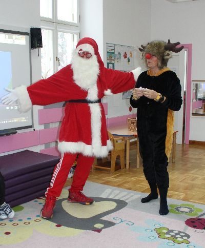 Wraz ze swoim reniferem przywiózł worek prezentów i zaprosił dzieci do wspólnej zabawy przy choince. Bardzo miło spędziliśmy przedświąteczne chwile w ich towarzystwie.