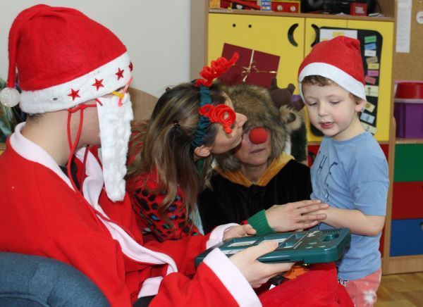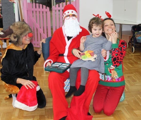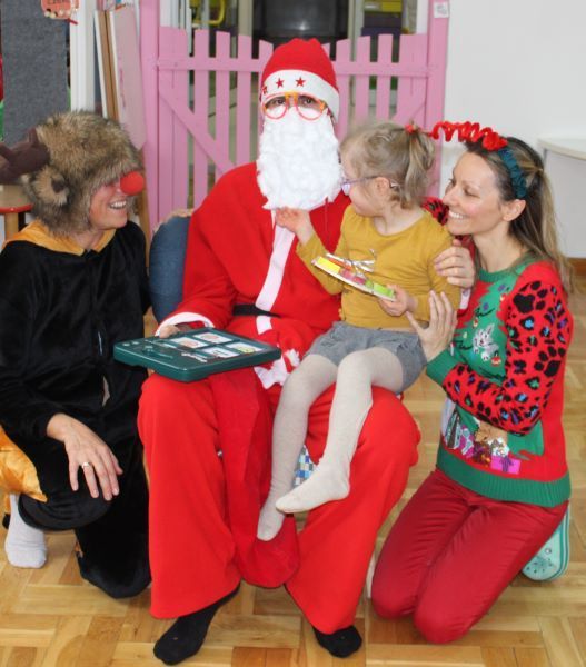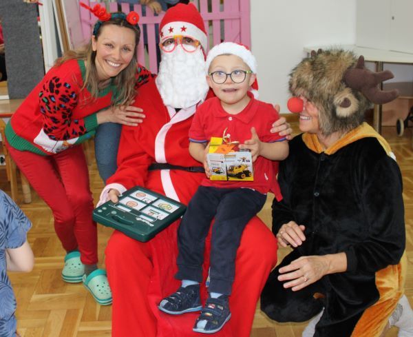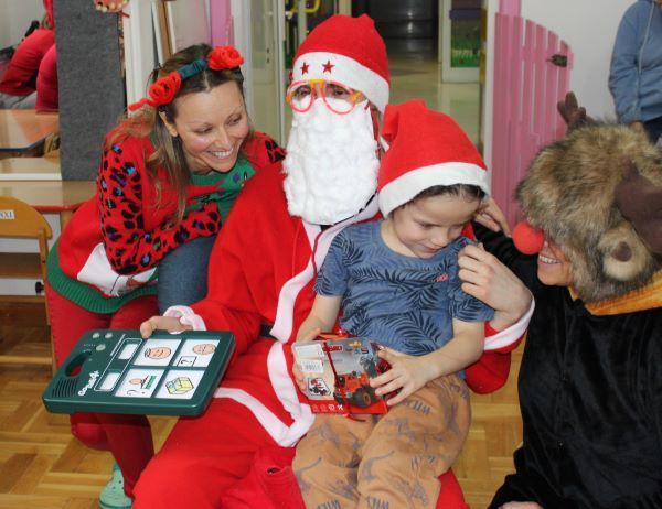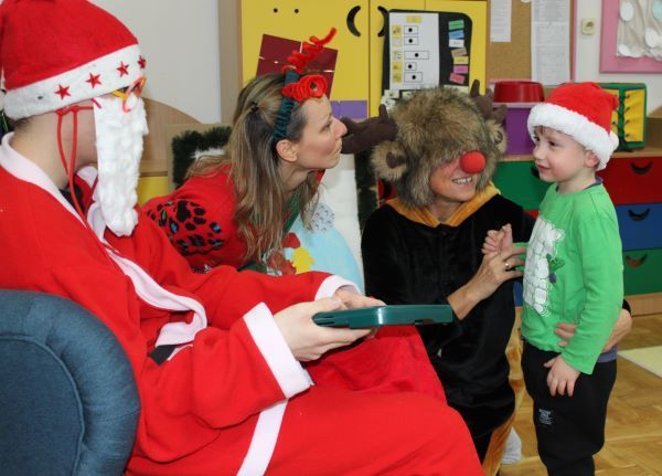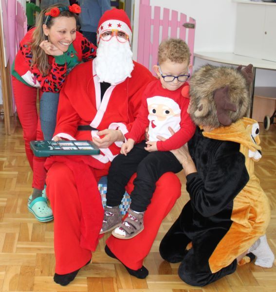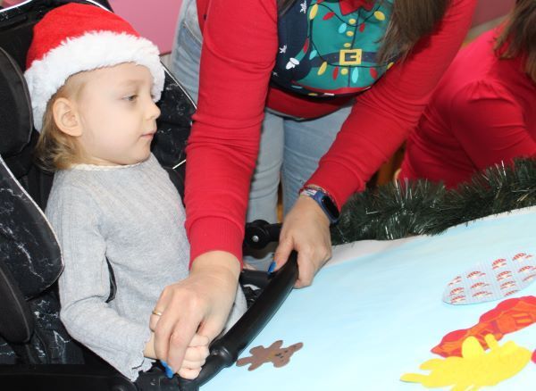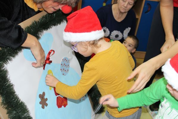 Dzieci musiały odgadnąć kilka zagadek, wykonać różne zadania i dopiero wtedy mogły zawołać Mikołaja. Mikołaj przybył z dalekiego kraju i porozumiewał się z nami przy pomocy komunikatora i symboli AAC. Każde dziecko otrzymało prezent.
