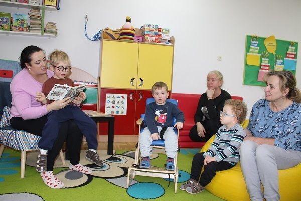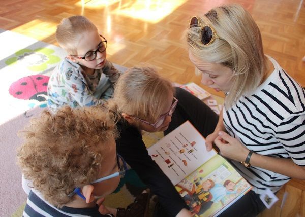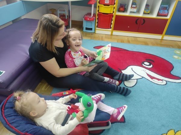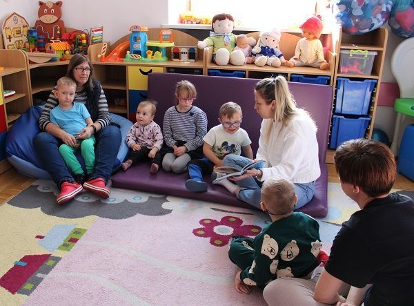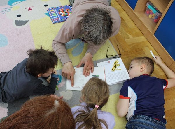 • „Czytanie na dywanie” – codzienne czytanie literatury dziecięcej przez nauczycieli, rozmowa z dziećmi na temat wysłuchanego utworu.