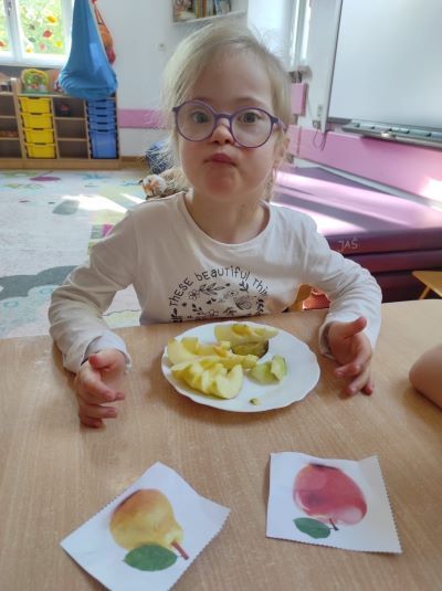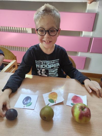 W czasie realizacji tematu „Jesień w sadzie” poznawaliśmy owoce dojrzewające jesienią. Dzieci rozpoznawały jabłka, gruszki i śliwki, próbowały ich smaków oraz dowiedziały się, jak powstają soki i przetwory. Zajęciom towarzyszyły zabawy ruchowe, muzyczne i sensoryczne z wykorzystaniem owocowych zapachów i kolorów.