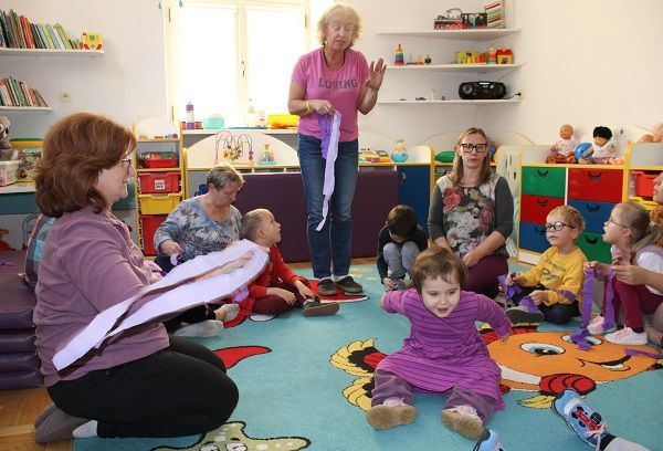 Symbolem zespołu Retta jest kolor fioletowy. Dzieci wraz z paniami - w miarę możliwości - tego dnia miały element ubioru koloru fioletowego.