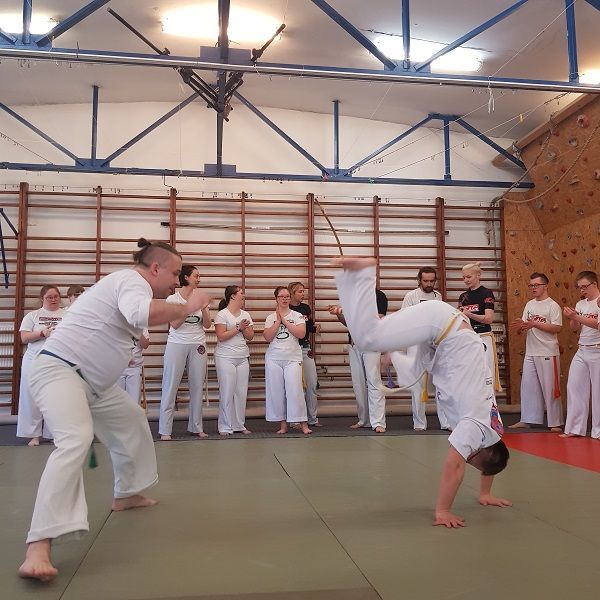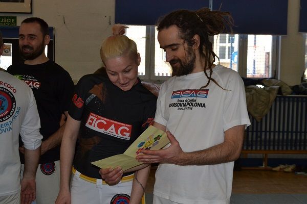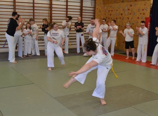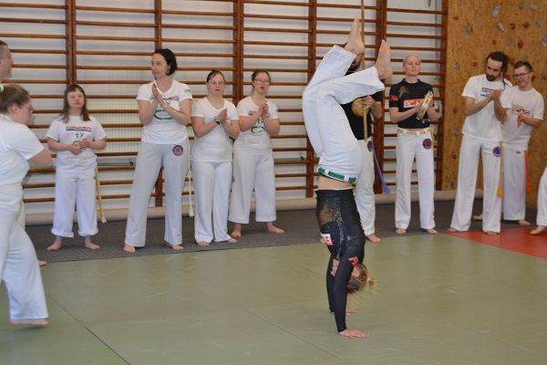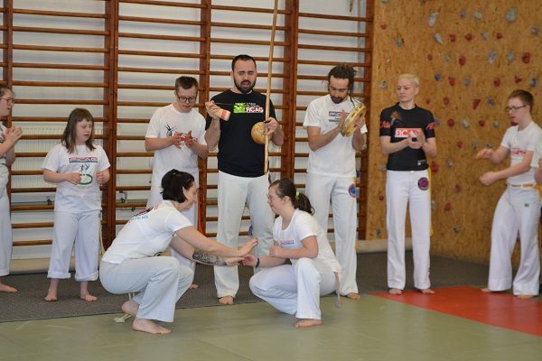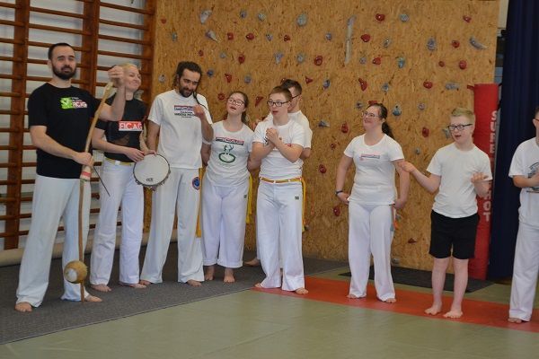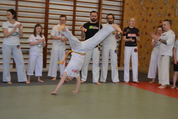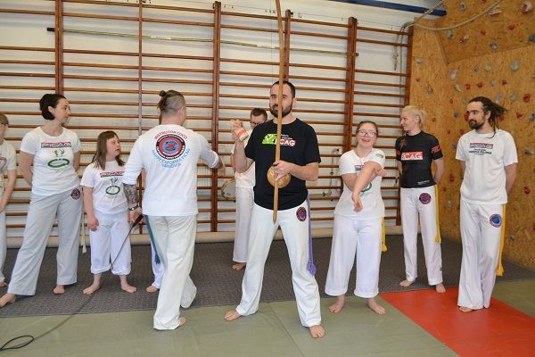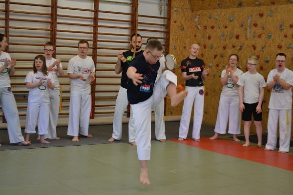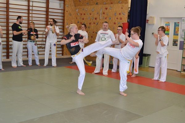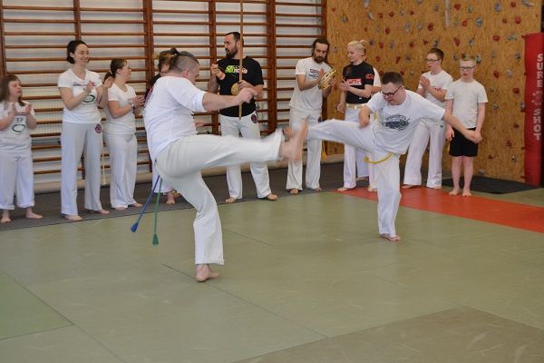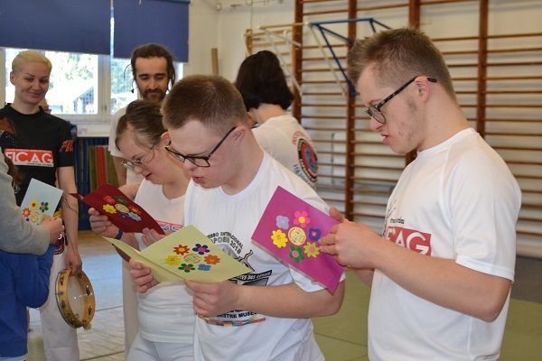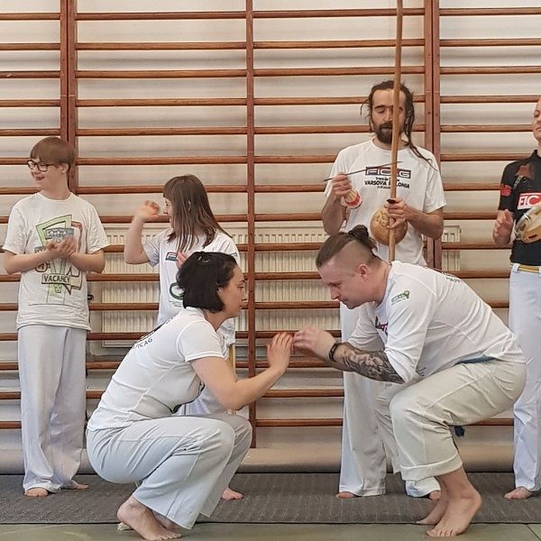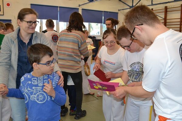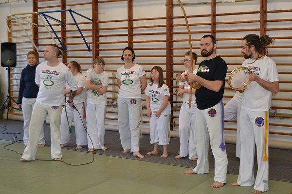 2. kwietnia odwiedzili nas uczniowie ze Szkoły Podstawowej nr 123. Z tej okazji grupa Różowa upiekła szarlotkę, którą mogliśmy poczęstować naszych starszych kolegów. Uczniowie pod okiem wspaniałego trenera od 5 lat trenują brazylijską sztukę walki Capoeirę i to właśnie tę sztukę mogliśmy podziwiać na pokazie jaki nam zaprezentowali. Spotkanie odbyło się w zaprzyjaźnionej Szkole Społecznej 26 STO.