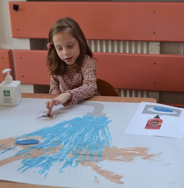 Trzeci etap to przeprowadzenie zajęć plastycznych pod hasłem,, Co ja mogę zrobić każdego dnia by pokonać wirusa?” Aktywność ta pobudza dziecięcą wyobraźnię, sprawia że dzieci bardziej do siebie odnoszą omawiane wskazówki i zastanawiają się, jak one mogą stosować je w codziennym życiu.