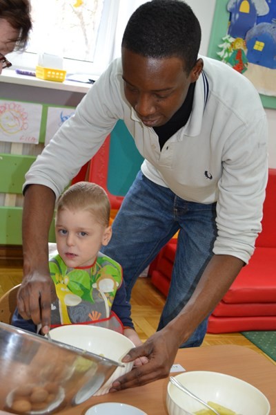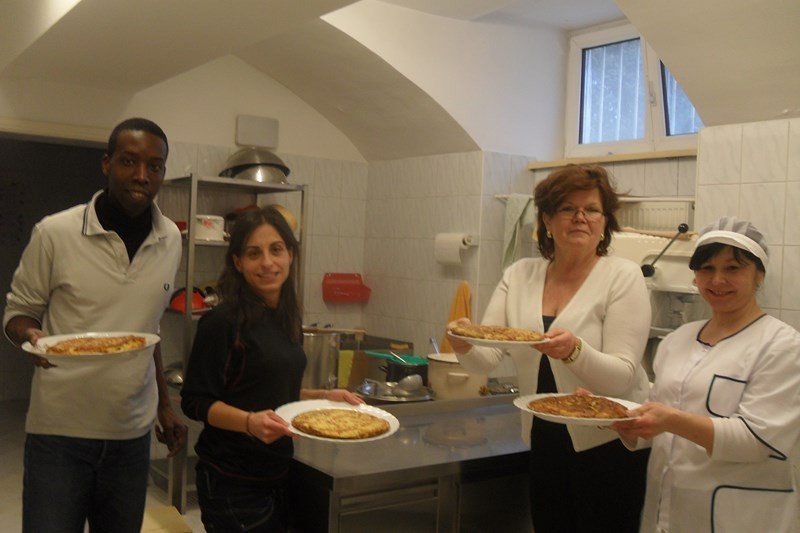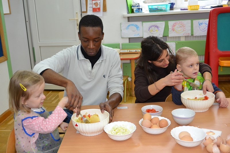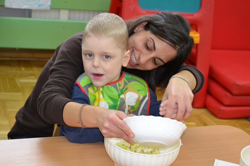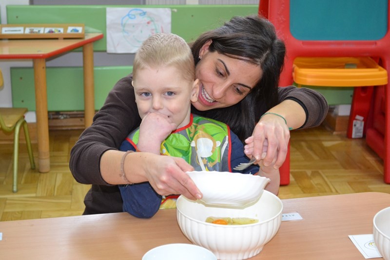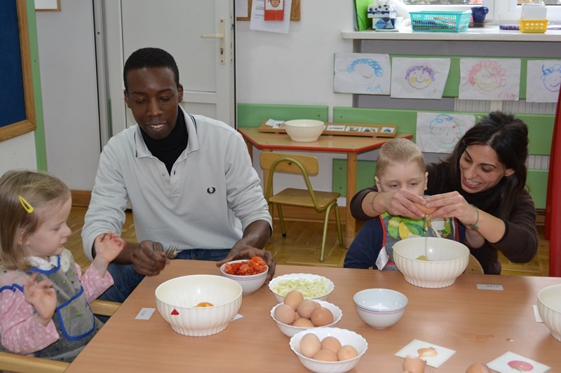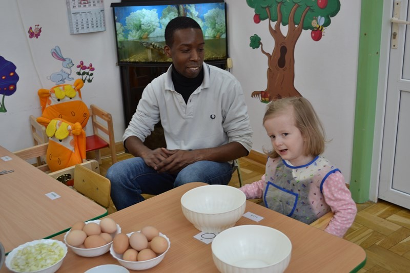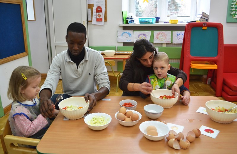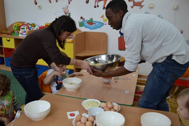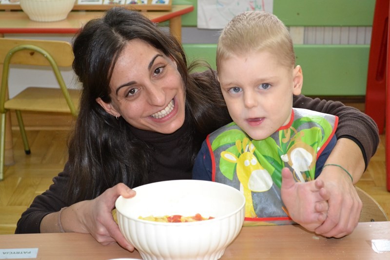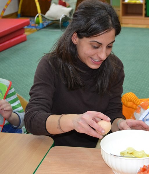 Mary wraz z dziećmi przygotowała dla wszystkich przedszkolaków i personelu tradycyjne hiszpańskie danie tortillę.