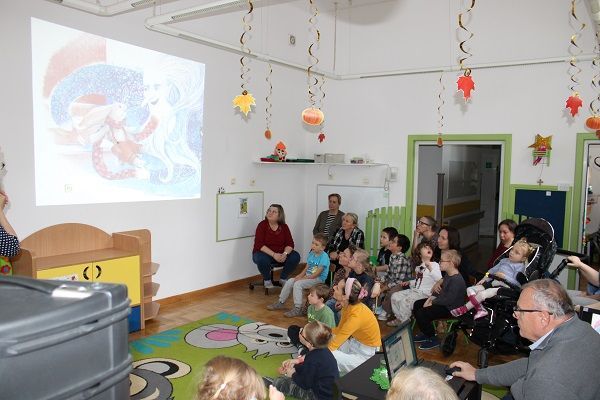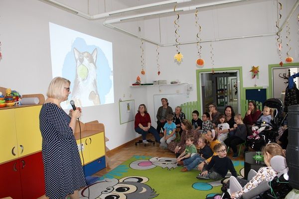 Pani Iwonna Buczkowska, która pisze książki dla dorosłych i dla dzieci, śpiewa oraz prezentuje własne programy satyryczne, wystąpiła w naszym przedszkolu ze spotkaniem autorskim, na którym zaprezentowała przedszkolakom swoją twórczość pisarską dedykowaną dzieciom. W czasie spotkania autorka opowiadała o „Pluszowym Zajączku” i bazując na jego treści, poruszyła tematy przyjaźni, a także właściwego postępowania w przypadku popełnienia błędu. Pani Iwonna opowiedziała także o swojej najnowszej książce „Lucek” opowiadającej o losach kundelka i jego właścicielki babci Marysi. Autorka podczas spotkania czytała fragmenty książek, śpiewała własne piosenki w czym wtórowała jej publiczność, odpowiadała na pytania dzieci, a na koniec można było kupić książkę z imienną dedykacją i autografem Pani Iwonny Buczkowskiej. Wszystkim nam na pewno na długo zostanie w pamięci jak dzieci wraz z autorką chętnie i głośno śpiewały „numer alarmowy każde dziecko zna, numer 112 -1-1-2!”. Pierwszy raz Pani Iwonna odwiedziła nasze przedszkole ale liczymy, że nie ostatni. Atmosfera spotkania była niezapomniana i na długo pozostanie w naszych wspomnieniach. Dziękujemy za spotkanie i za zakładki do książek, która autorka podarowała dzieciom.