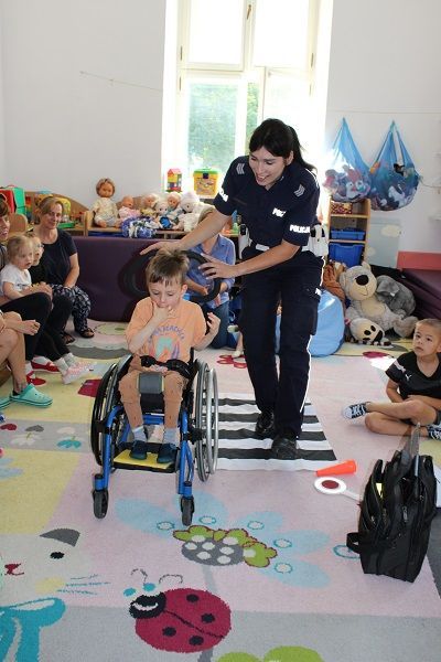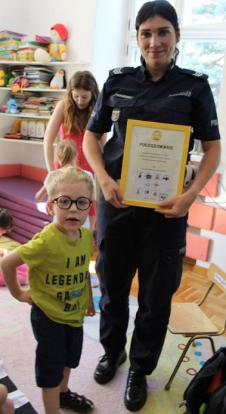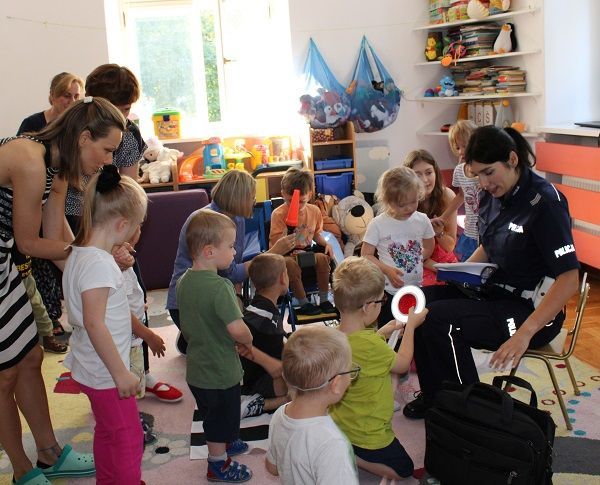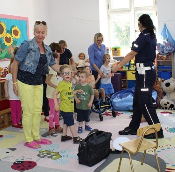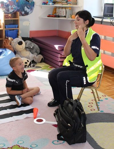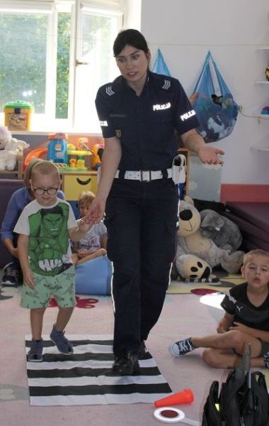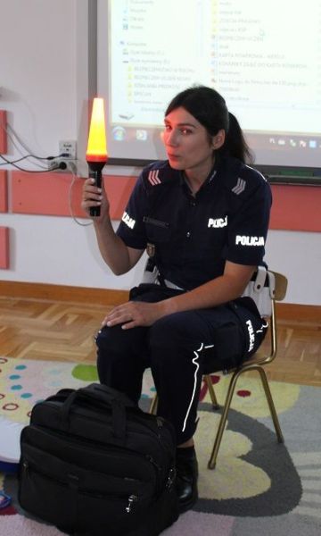 Tematem przewodnim spotkania było bezpieczeństwo i kształtowanie prawidłowych zachowań na drodze. W pierwszej części spotkania, którą przeprowadziła policjantka z Sekcji Profilaktyki stołecznego ruchu drogowego sierż. szt. Małgorzata Staniszewska, dzieci dowiedziały się jak należy prawidłowo zachowywać się na drodze. Była to doskonała okazja, aby poprzez zabawę przypomnieć maluchom o podstawowych zasadach bezpieczeństwa na ulicy. Przy tej okazji Pani Policjantka podarowała dzieciom i personelowi przedszkola opaski odblaskowe. W drugiej części spotkania odbyła się prezentacja radiowozu policyjnego. Dzieci miały wyjątkową okazję zobaczyć wnętrze i wyposażenie samochodu policyjnego. Pani Policjantce wręczono podziękowanie za przeprowadzenie cennej lekcji na temat właściwych nawyków, podwyższających poziom bezpieczeństwa na drodze.