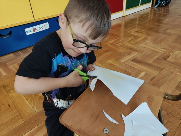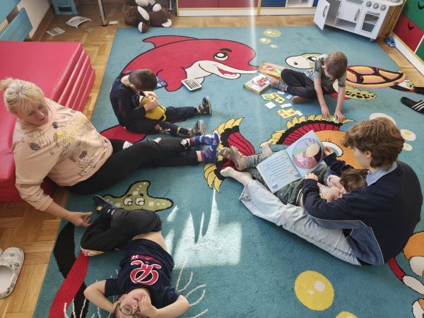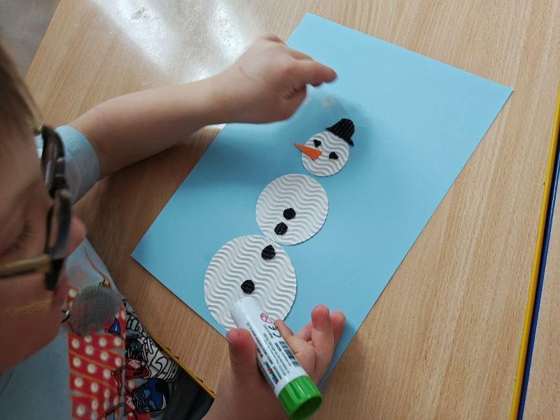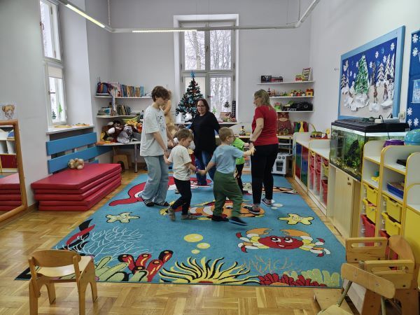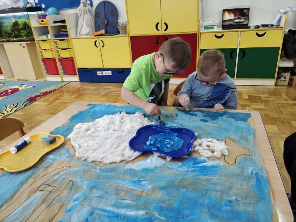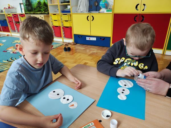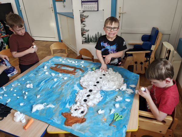 Styczeń w grupie niebieskiej upłynął w atmosferze bezpieczeństwa, którą budowały stałość i przewidywalność codziennych działań. Dzieci uczestniczyły w różnorodnych aktywnościach wspierających ich harmonijny rozwój. Zajęcia muzyczno-ruchowe sprzyjały usprawnianiu motoryki dużej, koordynacji wzrokowo-ruchowej oraz orientacji przestrzennej, a zabawy przy muzyce wspierały rozwój percepcji i koncentracji uwagi. Aktywności plastyczne i muzyczne, w tym relaksacja przy różnych gatunkach muzyki, wspomagały regulację emocjonalną oraz integrację sensoryczną. Wspólne doświadczenia wzmacniały poczucie przynależności i integrację dzieci w grupie.