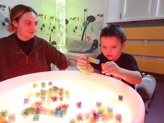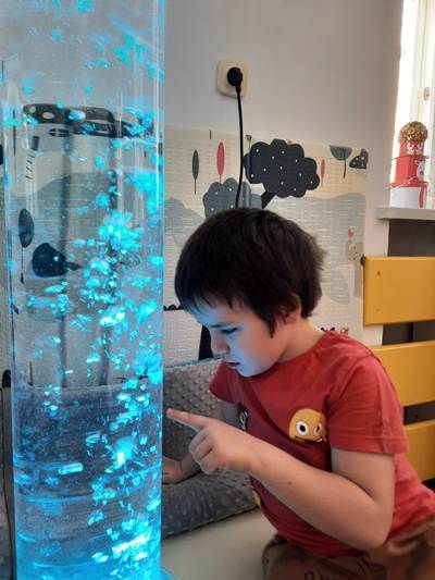 Styczeń minął nam na zabawie połączonej z nauką, podczas ktorej dzieci doświadczały i zdobywały nowe umiejętności. Dużo radości i wyciszenia przyniosła tuba sensoryczna z wodą, bąbelkami i zmieniającymi się kolorami.