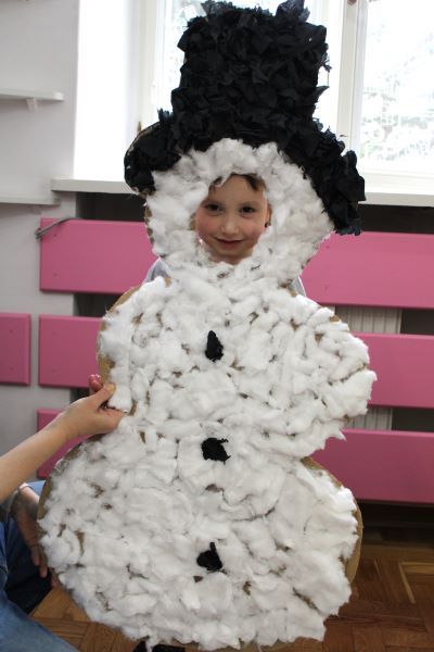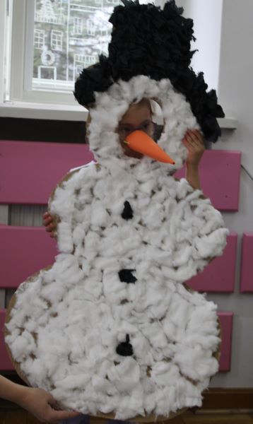 Oklejaliśmy szablon watą i w ten sposób powstał nam piękny bałwan - jako rekwizyt do zdjęć.