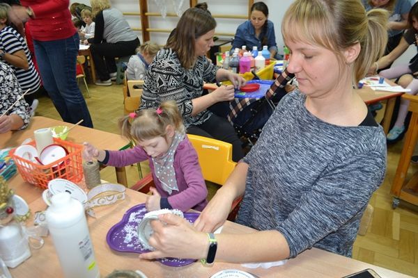 W grudniu, tuż przed świętami, odbyły się warsztaty dla rodziców, na których można było wspólnie przygotować różnego rodzaju ozdoby świąteczne lub kartki okolicznościowe.