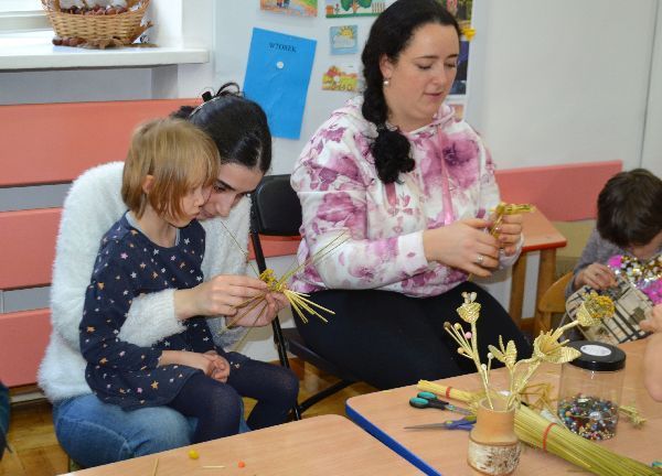 Wspólnie z dziećmi wykonaliśmy figurki ze słomy: lalki , koniki, aniołki, jeże, biedronki z plasteliny i koralików.