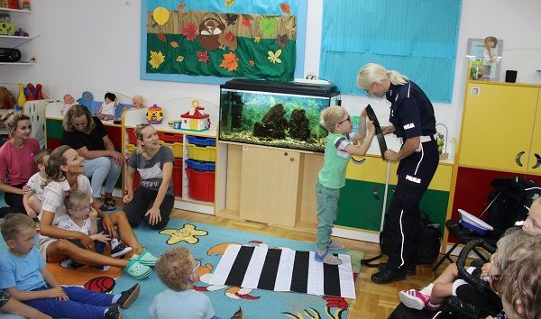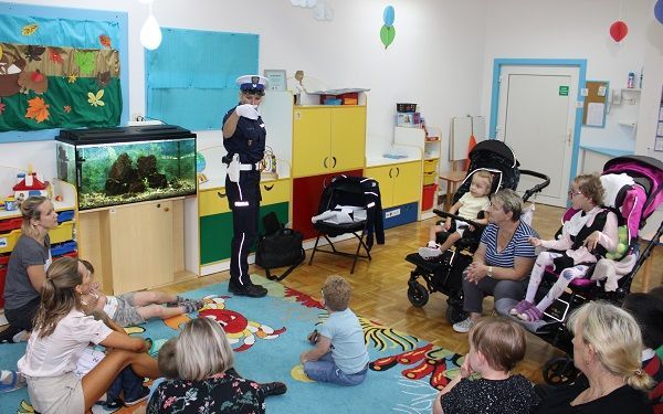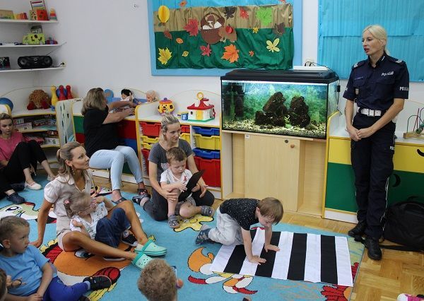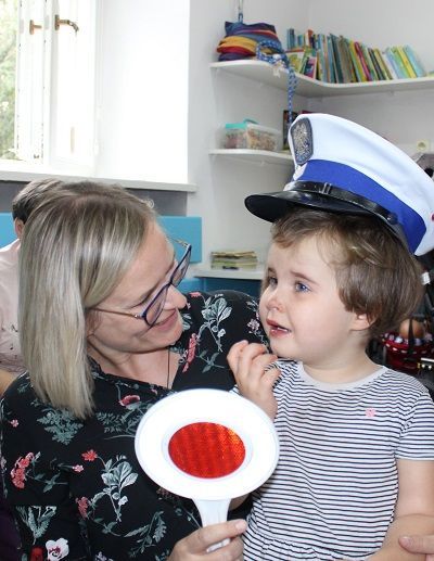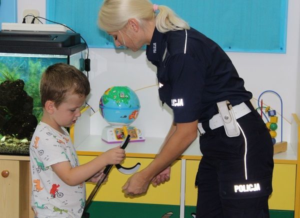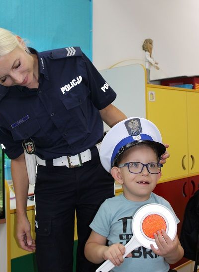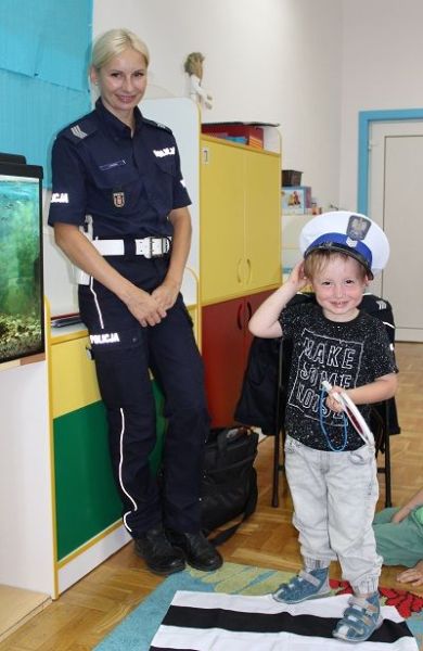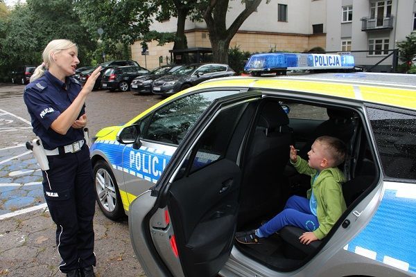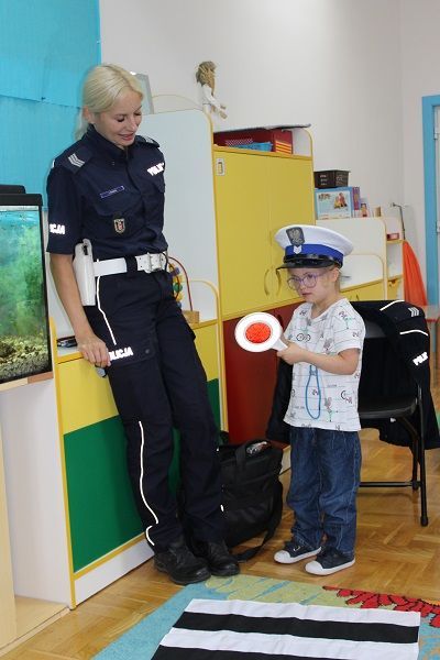 We wrześniu w naszym przedszkolu odbyło się spotkanie z panią policjantką z Wydziału Ruchu Drogowego Komendy Stołecznej Policji. Tematem spotkania było utrwalenie z dziećmi podstawowych zasad bezpieczeństwa na drodze. Pani policjantka w formie praktycznej, przypomniała dzieciom podstawowe zasady zachowania się podczas przechodzenia przez jezdnię. Największym zainteresowaniem cieszyło się oglądanie policyjnego radiowozu. Dzieci miały okazję usiąść w środku samochodu, a także usłyszeć syrenę policyjną. Ten dzień na pewno zapamiętają na długo.