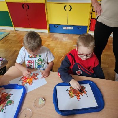 We wrześniu poznawaliśmy kolory jesieni, liczyliśmy kasztany i tworzyliśmy prace plastyczne. Braliśmy udział w zajęciach rytmicznych oraz bawiliśmy się na świeżym powietrzu.
