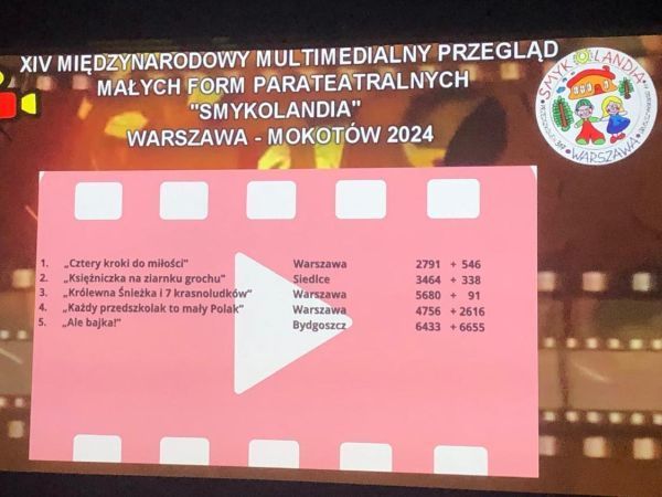 19 kwietnia odbyła się Gala XIV Międzynarodowego Multimedialnego Przeglądu Małych Form Teatralnych „Smykolandia”, w której patronat honorowy przejęły takie podmioty jak: Burmistrz Dzielnicy Mokotów, Minister Edukacji, Mazowiecki Kurator Oświaty, Ośrodek Rozwoju Edukacji, Dom Kultury Kadr oraz Ośrodek Rozwoju Polskiej Edukacji Za Granicą.