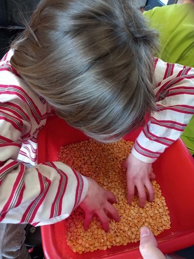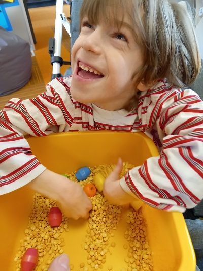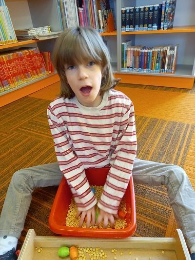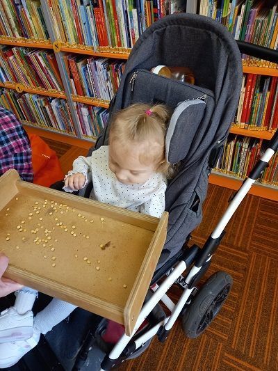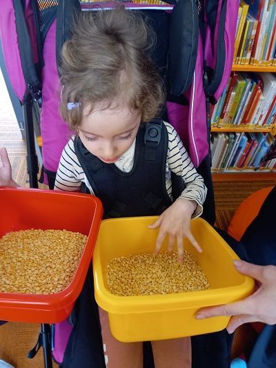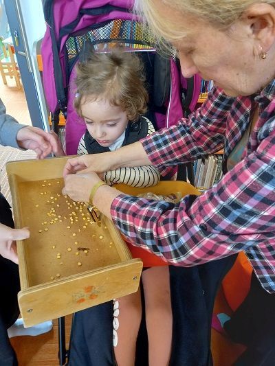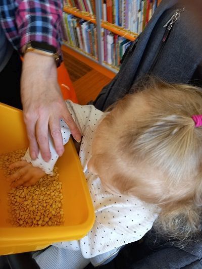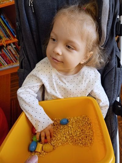 Podczas zajęć dzieci wysłuchały baśń pisarza Hansa Christiana Andersena o „Księżniczce na ziarnku grochu”. Przedszkolaki dowiedziały się, po czym można poznać prawdziwą księżniczkę. Miały możliwość przekonać się czy łatwo wyczuć ziarnko grochu pod poduszką. Sprawdzono jaki jest groch w dotyku i czy faktycznie czuć jedno ziarenko pod kilkoma warstwami pościeli. Dzieci uczestniczyły w zabawach sensorycznych z grochem.